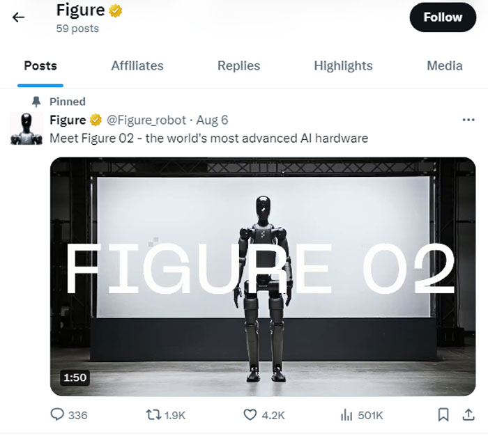 这款被誉为地标最强的人形机器人,身高1.70,体重70公斤。Figure的团队为了让机器人变得更完美,外表特意采用了更有现代感的整体外骨骼设计。