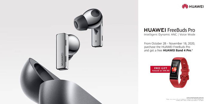 —— 购买HUAWEI FreeBuds Pro即可获得HUAWEI Band 4 Pro(红色,价值99.99加元)。