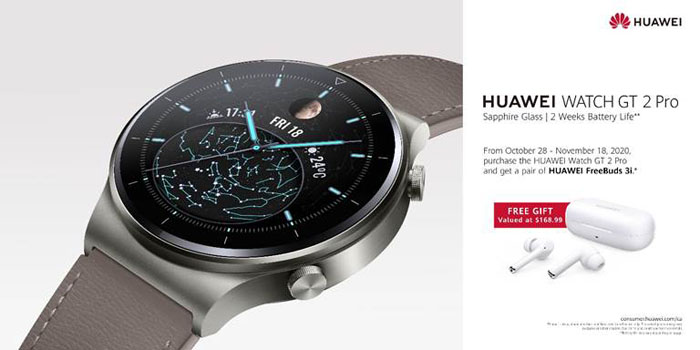 —— 购买HUAWEI WATCH GT 2 Pro即可获得HUAWEI FreeBuds 3i(白色,价值168.99加元)。