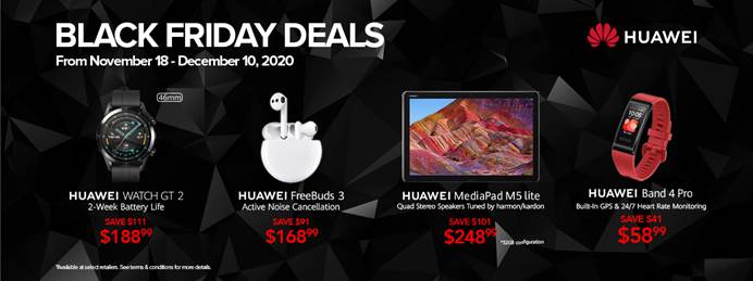 华为宣布加拿大智能手表、笔记本电脑、耳机、智能手机和平板电脑的黑五促销
