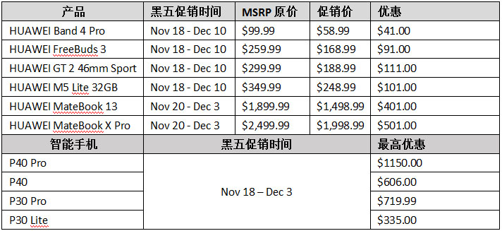 【加国生活网】华为消费者业务为庆祝节日来临,于2020年11月18日(周三)至12月10日(周四)期间,在其最受欢迎的产品上进行限时优惠活动。节日购物者可以用惊喜的价格享受最新的前沿技术以及奢华的设计和质量。