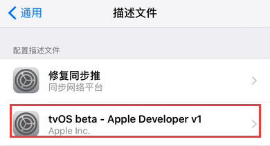 在描述文件列表里面,找到一个名为tvOS beta-Apple Developer v1的文件,打开它