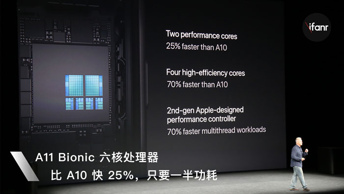 容易被忽略的是“仿生”这个后缀,A11 还单独拥有一个每秒运算次数最高可达 6000 亿次的神经网络引擎,在当前它可以担负起为面容 ID 提供快速分析的性能支撑,而后期则将体现出其在神经网络和深度学习方面的优势,在人工智能等应用中发挥巨大作用。