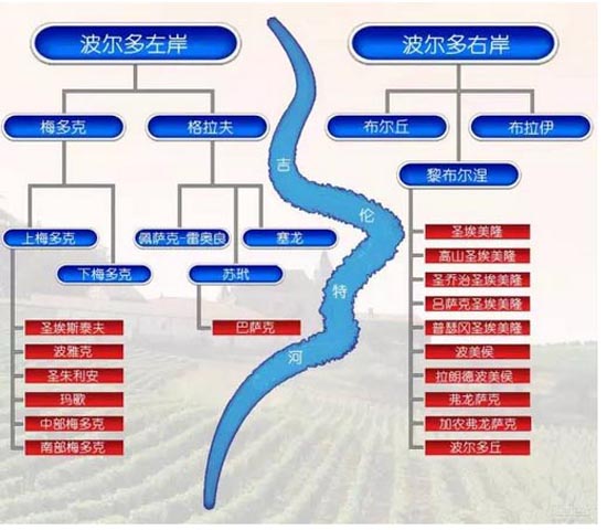 波尔多地域辽阔,约有13万公顷葡萄园,年产8亿瓶葡萄酒,共分为57个AOC法定产区,占法国AOC产量的四分之一。从大产区到著名的村庄,产地越小,出产的酒品质就越高。