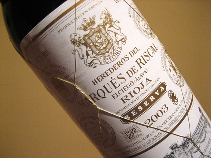 提到里奥哈的酒瓶,最显著的特征也许就是包在瓶子外面的一层金丝网。而这个发明,最初并不仅仅是为了美观:当时,瑞格尔侯爵酒庄(Marques de Riscal)发现,市场上出现了一些靠假现象,有人试图把瑞格尔侯爵酒庄的酒标取下,贴到廉价的葡萄酒瓶,“狸猫换太子”。因此,金丝网可以用来“保护”酒标。
