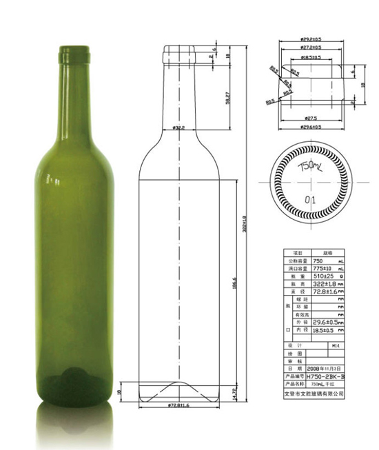 18世纪的时候天然软木塞开始用于葡萄酒的封瓶,同时葡萄酒瓶的形状和容量开始趋于标准。在中世纪的葡萄酒瓶的形状都是矮胖的,有点像陶瓶,而且各个地区容量并不统一,十七世纪的时候玻璃酒瓶才开始大量的用于葡萄酒的储存,当时玻璃瓶还是人工吹制的时代,每一瓶酒的容量大约700ml左右,是一个工人吹一口气所吹出的容器的平均值,这个容量也就成了大部分酒瓶的平均容量。