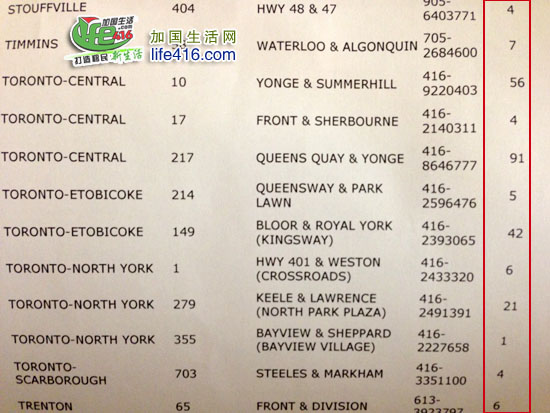 2014年10月9日查询的、拥有最多瓶该酒的LCBO店(见红线标注的数量)