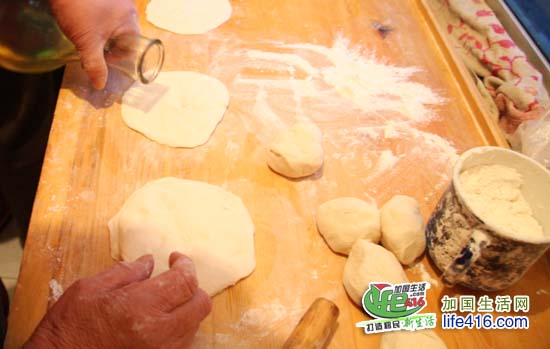 面醒好后,先揉成长条,再用刀切成一段段小面团(婆婆手法厉害,这一段段是用手“切”的)