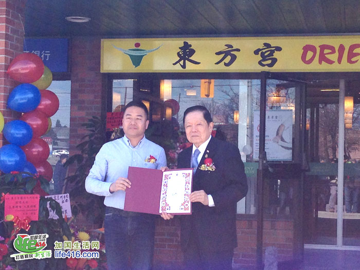 加拿大国会参议员胡子修先生宣读了对东方宫多伦多直营店成立的贺词,并期望东方宫能将正宗的中国兰州牛肉拉面带到温哥华以及渥太华,丰富及提升当地的华人餐饮市场!