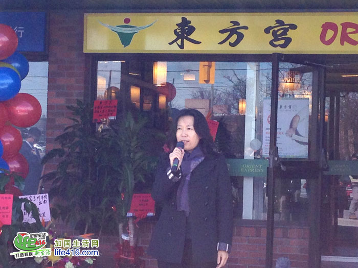 中华人民共和国驻多伦多总领事馆商务领事李燕华女士代表总领馆对东方宫多伦多直营店的开业表示祝贺,并回顾了2014年第一次在北京品尝东方宫中国兰州牛肉拉面的故事,以及自此以后将东方宫中国兰州牛肉拉面列入回国必吃美食的情结,勉励东方宫能将来自祖国的这一美食成功推广给加拿大的广大华人。
