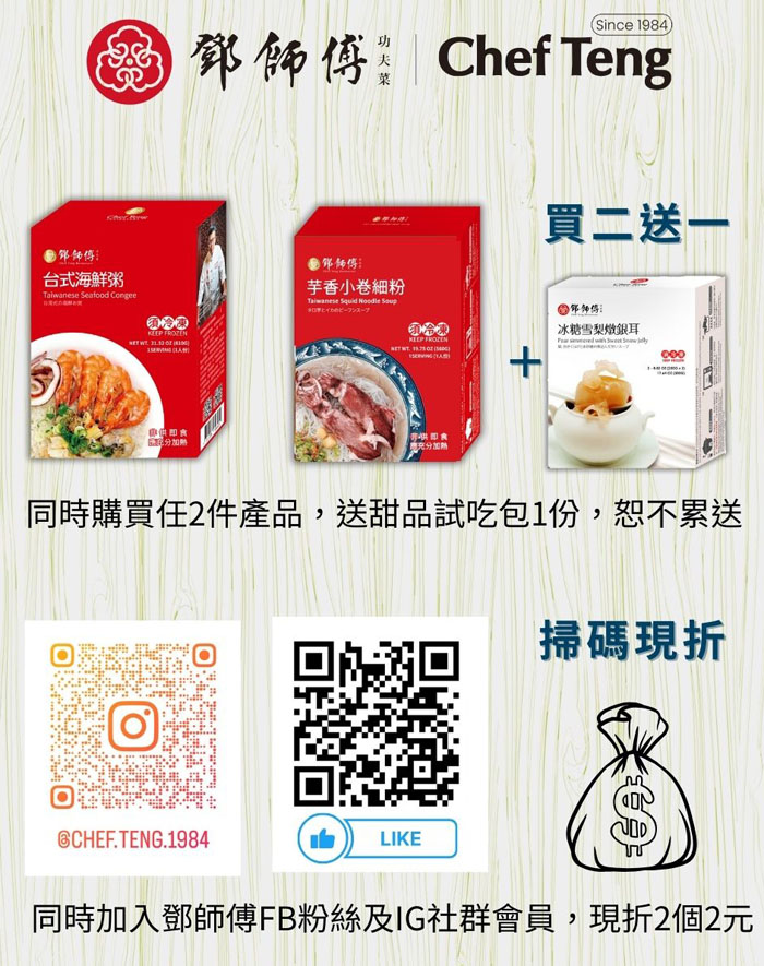 鄧師傅功夫菜以四十多年經驗為基礎,將傳統台灣美食工藝帶到國際市場,年菜系列中特別強調食材的新鮮和烹調工藝,以正宗台灣口味征服饕客。鮑魚烏參佛跳牆濃郁的湯頭象徵團圓與富足;鮑魚乾貝荷葉飯以香氣四溢的荷葉包裹鮮甜乾貝和鮑魚,帶來年節的華貴風味;蔥鮳鯽魚則以新鮮鯽魚和蔥香,寓意年年有餘,給年夜飯增添美好寓意。