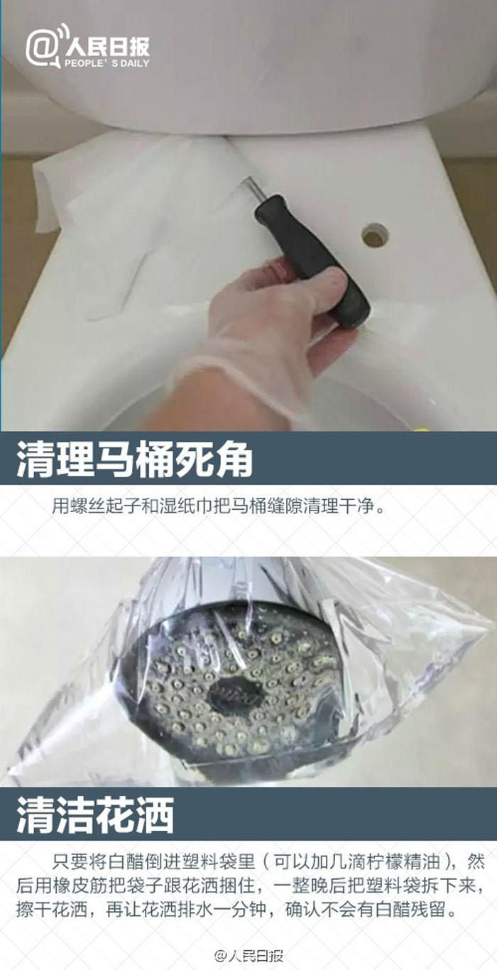 厨房和卫生间总是家里最难清洁的地方,想让厨房和卫生间变回最初干净纯白的样子?抽油烟机脏:温水+食用碱;锅底黑:小苏打+保鲜膜;花洒堵:白醋+柠檬;浴室砖墙黄:洁厕液……最实用的清洁小妙招↓↓油、脏、臭,通通解决!趁假期,动手打扫吧!