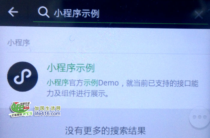 3、微信会搜索出如下图的“小程序示例”,这是微信的一个官方的小程序Demo(演示程序),只要安装了微信6.5.3以上版本的就都可以找到。