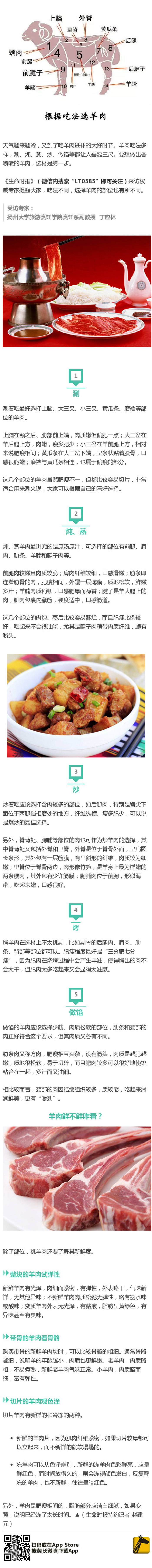天气渐冷,到了吃羊肉的大好时节。无论是涮、炖、蒸、炒、做馅,羊肉都味鲜多汁,让你爱不释口。但你知道上脑、大三叉、小三叉、黄瓜条、磨裆这些专业叫法是指羊肉哪里?又有什么区别吗?《生命时报》采访烹饪专家,教你挑出最佳羊肉。