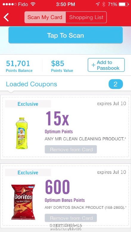 8、新卡的积分方式则是每消费$1就可得15点。之前的旧Shoppers Optimum卡的积分是每花$1给10点,Shoppers每个周末的各种20倍的积分活动继续举行,这样还能加速积分。同样的,Loblaw超市的各种积分奖励计划也继续执行。
