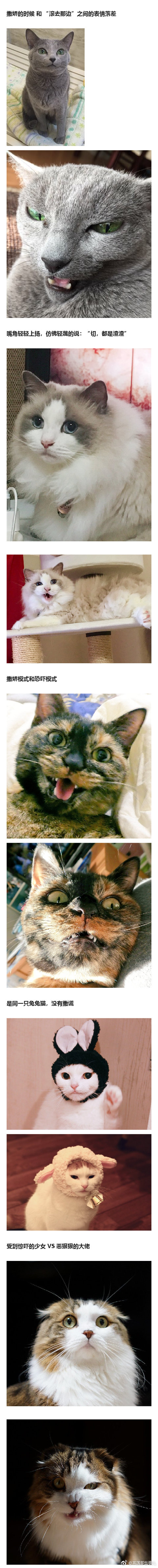 喵星人的面部表情变化能有多大 一波铲屎官分享喵星人“变脸对比照” 真是让人怀疑家里到底养了几只猫