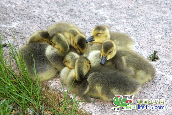 相信许多移民朋友同小编一样,能经常在加拿大各地看到已经成年的Canada Goose,但“婴儿时期”的Goose 却很少能见到。如今能在Edwards Garden 看到活生生的Baby 们,所有在公园里的人们都停下脚步,用相机拍下这激动一的瞬间。Baby 们只做一件事,那就是吃了睡,睡了吃。