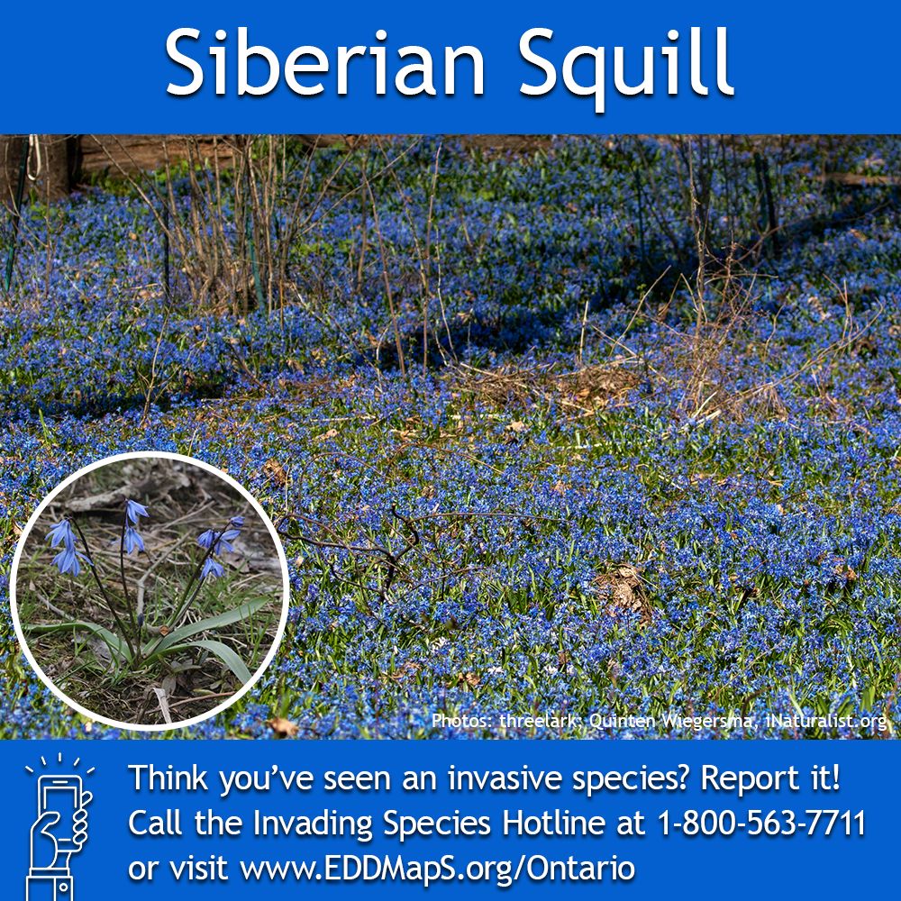 这种植物名为西伯利亚蓝星(Siberian Squill,或称 Scilla),原产于俄罗斯,最初作为观赏植物被引入北美。因其蓝紫色花朵鲜艳、适应力强,曾在园艺界大受欢迎;然而,它的迅速繁殖能力会对本地原生植物造成压制性影响。