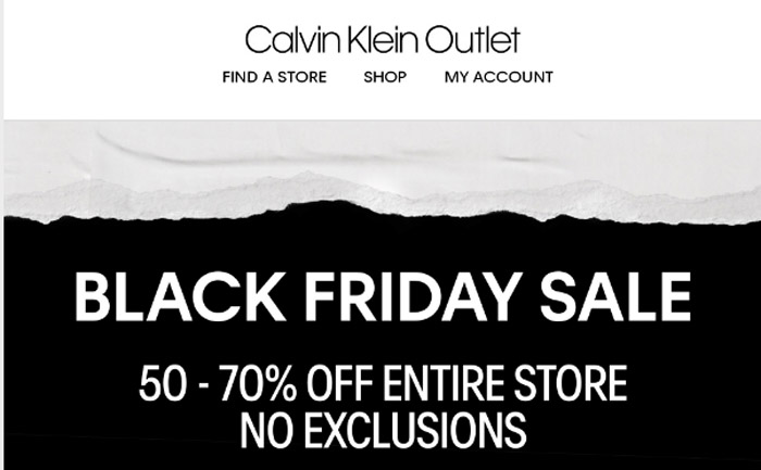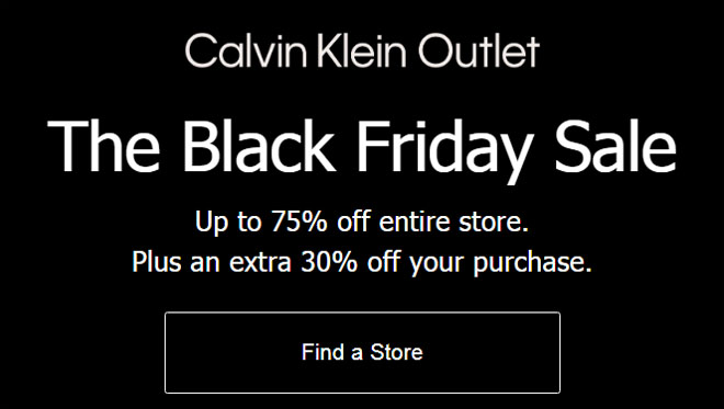 Calvin Klein分不同的实体店,其中的Calvin Klein Outlet 店在黑五全场up to 75% off,还有额外30% off,请点击这里查询哪里有outlet实体店