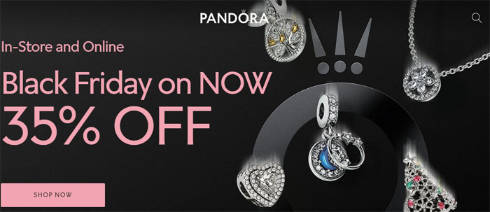 Pandora的黑五促销DEAL同去年一样,都是实体店和网站35% OFF!!详情:https://ca.pandora.net