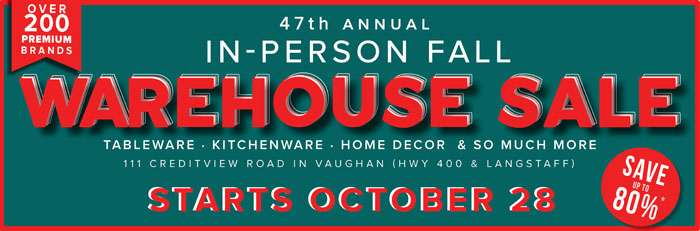 【加国生活网】每年都是圣诞节前一个月举行的William Ashley Warehouse Sale又早早地从10月28日开始举行了,感兴趣的朋友不妨去看看,今年是第47届,届时现场有厨房用品、家居用品、浴室用品、儿童玩具等打大折出售。这个Warehouse Sale在西人社区相当有名,许多人甚至开几个小时的车从安省北部到这个 Warehouse Sale来扫货。要知道,这个Warehouse Sale 里全部是知名品牌,包括Wedgwood、Denby、Doulton、Waterford、Riedel 等等,全场最高优惠 90% off,能以超低的价格买到超好的产品。