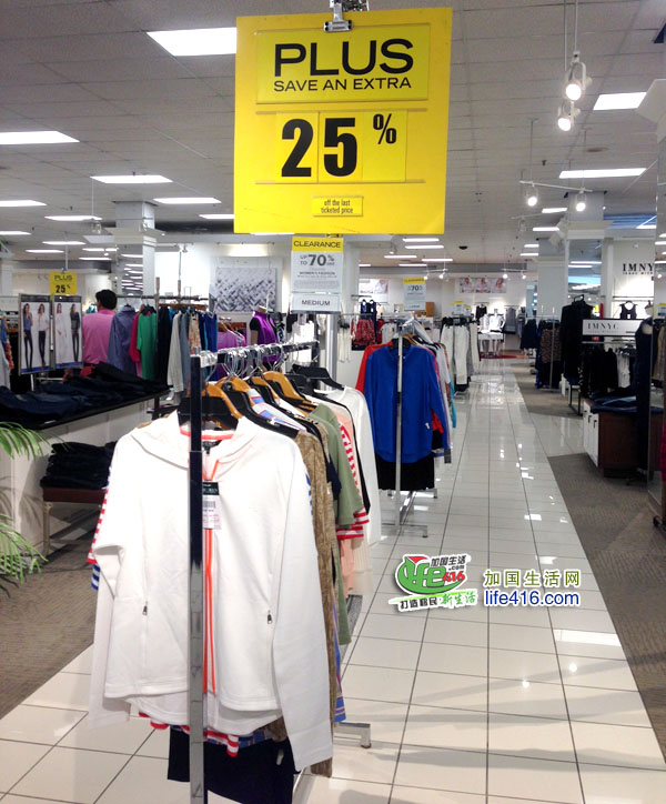 目前加国生活网小编得到的最新消息是除了ZARA在清仓促销外,加拿大BAY商场女装部也在进行大规模的清仓促销,好多品牌的服装都是up to 70% off后,再额外25% off,还有一些品牌是额外40% off。全加拿大BAY商场同时进行这个促销。
