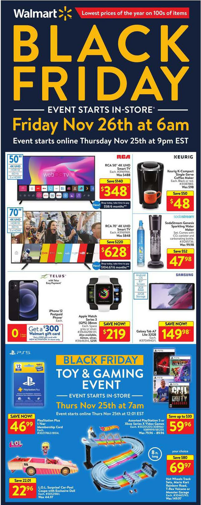Walmart 实体店黑五促销是从11月26日一大早6点就开门了,而网店促销则在11月25日晚上9点开始。具体促销产品请看下图和FLYER链接。