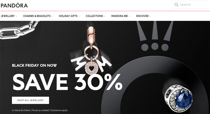 Pandora的黑五促销DEAL没有去年多,去年是实体店和网站都是35% OFF,今年是30% OFF!!详情:https://ca.pandora.net
