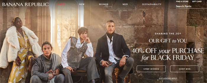 Banana Republic的黑五优惠也是今年没有去年多,今年实体店和网店都是六折优惠,而去年都是五折优惠。网店超过$50订单免邮费没有变,详情:https://bananarepublic.gapcanada.ca