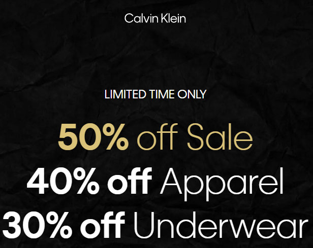 Calvin Klein网店的黑五促销是:已经打折的商店再50% OFF;未打折服装40% OFF;未打折的内衣30% OFF,详情请点击这里:https://www.calvinklein.ca/en