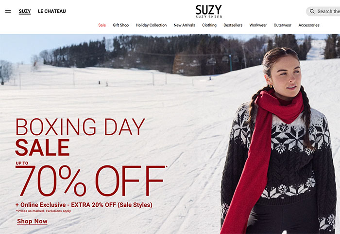 Suzy Shier服装在今年的Boxing Day当天直接up to 70% off,某些促销商店还有额外20% off,打折力度要比去年大很多哟,快去实体店或网店淘宝吧:https://suzyshier.com。