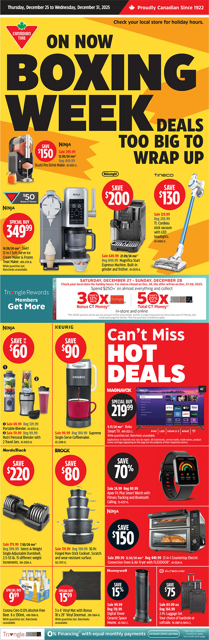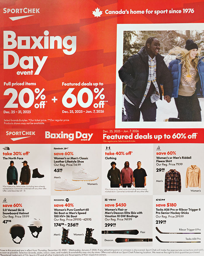 Canadian Tire 的Boxing Week Flyer 是从2025年12月25日至12月31日,小编看了一下FLYER,好多商品的打折力度挺大的。另外,12月26日还有更多优惠,详情请点击这里查询:https://www.canadiantire.ca/en/flyer.html