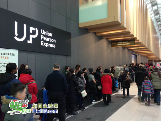 据悉2月13日促销活动的第一天,有一万多人乘坐了机场快线。加国生活网小编刚好在2月15日那一天(免费促销的第三天)路过UP Express车站的现场,仍然看到了长达几里地的队伍,看来市民们都想坐坐UP Express。