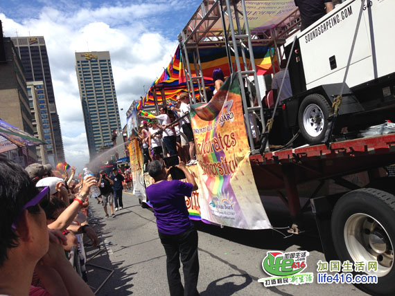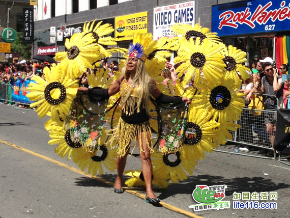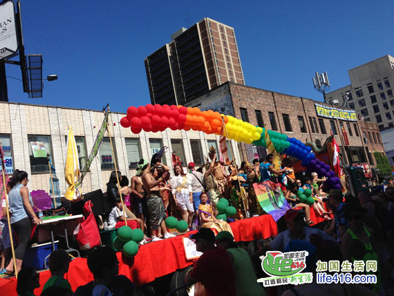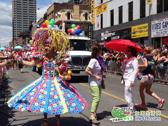 【加国生活网】2013年多伦多同性恋大游行于6月30日星期天下午2点准时在加拿大最长的街道Yonge 街上举行。这个游行绝对是全加拿大最大型的游行,近三个小时哟,全城都在疯狂。