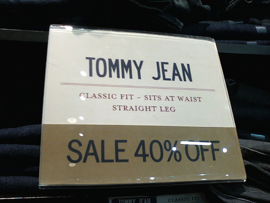那天在Tommy Hilfiger,看到一整面墙的牛仔裤在打40% off,小编“遇着”一个帅哥营业员,问他这么多款式的牛仔裤,哪条穿着更舒服些?小帅哥相当nice,详细介绍了这些款式的区别,小编也终于明白了这其中的奥妙。
