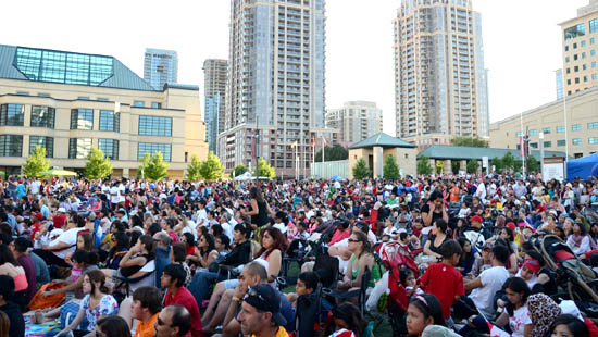如果你觉得加拿大人少,那你一定要在这天去Mississauga 新整修的庆祝广场(Mississauga Celebration Square),因为那里是People Mountain,People Sea,这句中国的成语用在这里最合适不过了,人山人海。