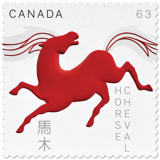 【加国生活网专稿】同往年一样,加拿大邮政局每年都会在一月发行极具中国文化特色的生肖邮票,2014年马年生肖邮票已经在2014年1月13日发行。这是加拿大邮政局第二次发行马年生肖邮票,第一次是2002年。