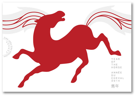Year of the Horse: Postage Paid Postcard - Domestic Stamp Image $1.99 马年贺卡,共有两种,一种是国内邮资马年邮票的图案,可以从加拿大邮寄到世界各地的。