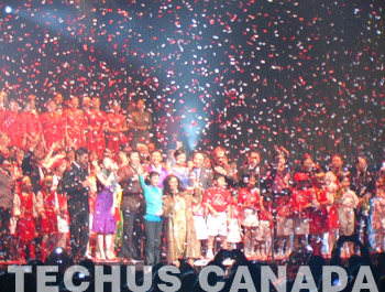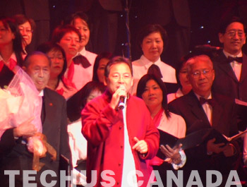 来自台湾的张帝已经60多了,声音还是那么好,他素有“急智歌王”的美誉,他能把观众问题用唱歌的方式机智幽默地表达出来。当现场观众问“两岸何时统一”时,张帝当场作词演唱:“在我的心里,两岸已经统一……希望中国人不再骨肉分离……”唱到动情处,他走下舞台,同前排观众握手拥抱,全场报以经久不息的掌声。台下,多伦多一华人团体打出的标语准确地表达出广大华侨华人的心声:“同一首歌、同一颗心、同一条根”。