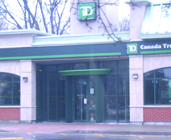 加拿大四处可见的TD Bank(中文叫道明银行,估计有人会以为是《流星花园》里道明寺他家开的银行,哈,哈,当然不是了)大门紧闭。