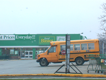 西人超市Basic Food根本就不见个人影。(那辆桔的车是校车,就是学校每天接送孩子上下学的车子,今天当然也不用上班了。看到那个校车上的红色Stop牌子了吗,这个牌子的权利可大了,当校车在某处停车让孩子上下车时,只要这个Stop牌牌一伸,校车后的所有车辆一律停车,不准开。当然了,这是为孩子的安全而考虑的,考虑得很周到。)