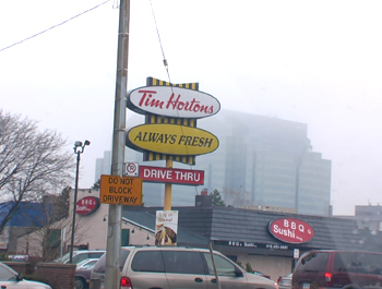 满多伦多唯一热闹的地方估计就是这里,Tim Hortons专门喝咖啡的店。(Tim Hortons的咖啡不太贵,也很好喝,所以深受加拿大人欢迎。去那里喝咖啡、吃早点也是一种享受。)