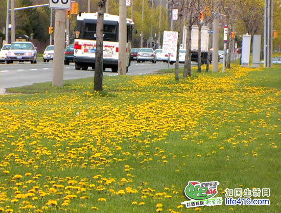 【加国生活网】这几天,开车行进在多伦多的大街小巷,遍地都是黄花。如果眯起眼睛看车窗外,眼前全是金黄。不过几个星期后,这些黄花就会全部变成蒲公英,那时的颜色就没有现在这么亮丽了。多伦多四处都是草地,每个社区的前前后后都有大片大片的。以前租别人家house那会儿,晚饭后最舒服的事儿就是出去散步,那儿前后有两个大草坪,每个都有足球场那么大,你可以在那儿想玩什么就玩什么。这么大的草地,如果是放在国内,要么就是让房地产开发商拿去盖高楼了,要么就是围上栏杆,写上“请爱护草地”,以致于刚来多伦多那会儿,我每次在柔软的草地上散步的时候,心里总是有点不安,生怕有人从什么地方跳出来大骂我不爱护公物。