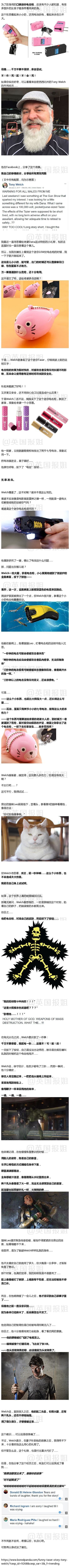 不作死就不会死,美国一个想给老婆买电击枪当礼物的男人,怕威力不够大,于是自己以身试法他分享出来的教训,也是让人忍不住笑出声……答应我,以后别作,好吗?