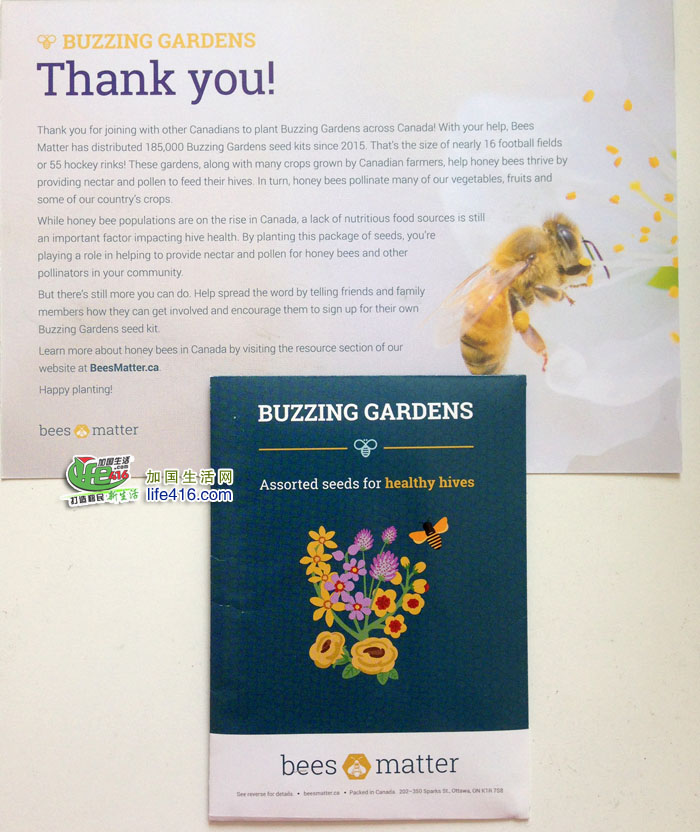 影响蜜蜂健康的一个重要因素是获得充足的营养。当春天到来、气温上升时,如果蜜蜂没有从花中收集到足够多的花蜜和花粉,那么当冬季到来时,蜂蜜蜂群就可能面临严峻的挑战。加拿大民众能做什么来帮助蜜蜂茁壮成长?种花吧!还有一个好消息就是:Bees Matter免费送花种了!申请后免费寄到你家!