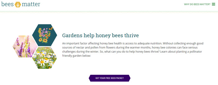1、到官网http://www.beesmatter.ca/ 找到下面这部分内容,点击“Get Your Free Seed Packet”,进入下一页;