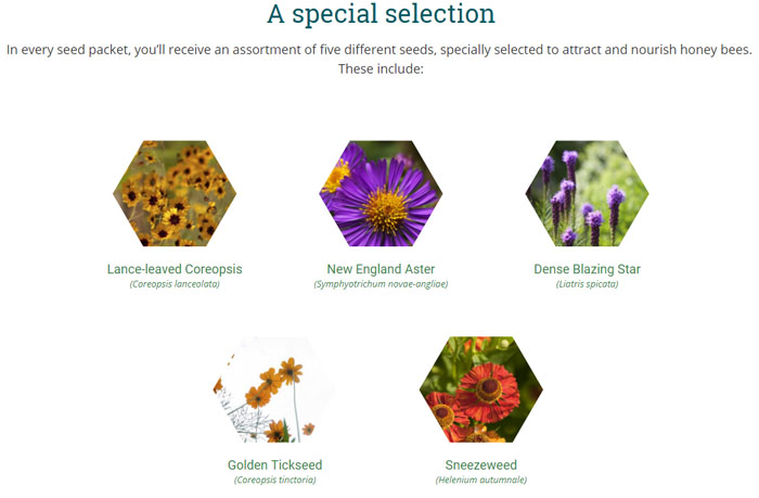 种子礼包共有5种花种,有Golden Tickseed、Lance-Leaved Coreopsis、Dense Blazing Star、Sneezeweed、New England Aster。每颗种子都有不同的需求。大多数种子包都有详细的说明,说明播种的方式和时间,种植的深度,是否在室内或直接在土壤中开始,等等。Bees Matter专门挑选了那些好繁殖的花种,对环境不甚挑剔,种植起来简单容易。