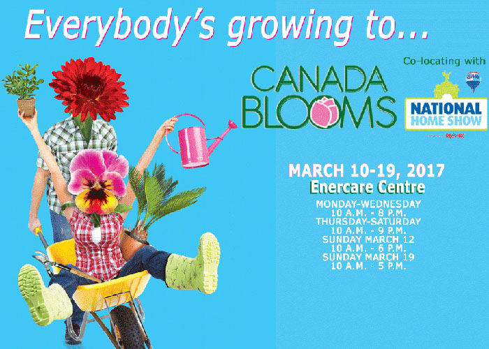 开展的第一天,首批入场的参观者都能得到一个大礼包。Canada Blooms 和 National Home Show 于2014年3月14日至23日在Direct Energy Centre, Exhibition Place (100 Princes'' Blvd., Toronto, ON)举行,其中星期一至星期六10am-9pm,星期日10am-6pm,最后一天3月24日星期日10am-5pm,历时10天。