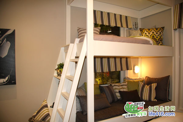 这是儿童房,上下铺的设计让小编这个成人都想上去躺一会儿。