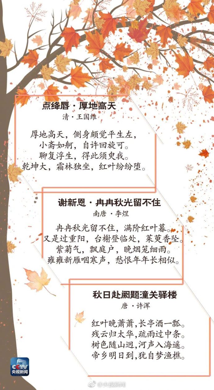 秋意渐浓,正是观赏红叶的好时节。在古诗词中,红叶是“霜叶红于二月花”的艳丽,是“天然妆点秋屏列”的缤纷,是“冉冉秋光留不住”的怅然,是“孤梦家山远”的乡愁…一起读这些唯美诗词↓↓品诗意,赏秋光。